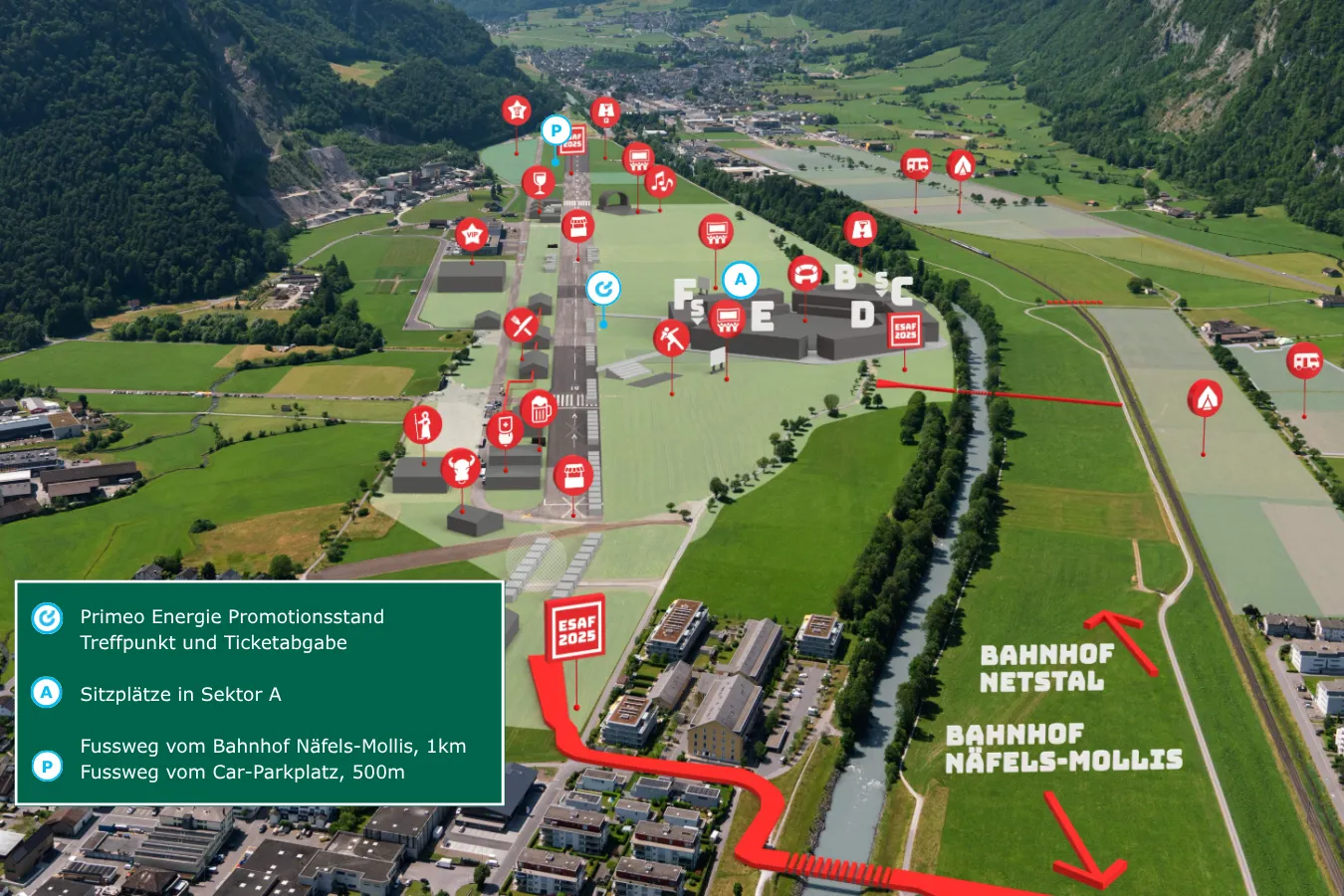 Übersichtsplan & Treffpunkt ESAF 2025 in Mollis